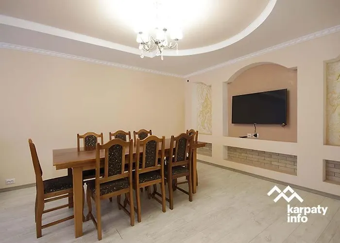 Här finns matplats utomhus och mathörna, där gästerna kan använda te-/kaffebryggare. Det finns också mikrovågsugn, vattenkokare och kylskåp i köket. Ivano-Frankivsk internationella flygplats ligger 85 km från boendet.